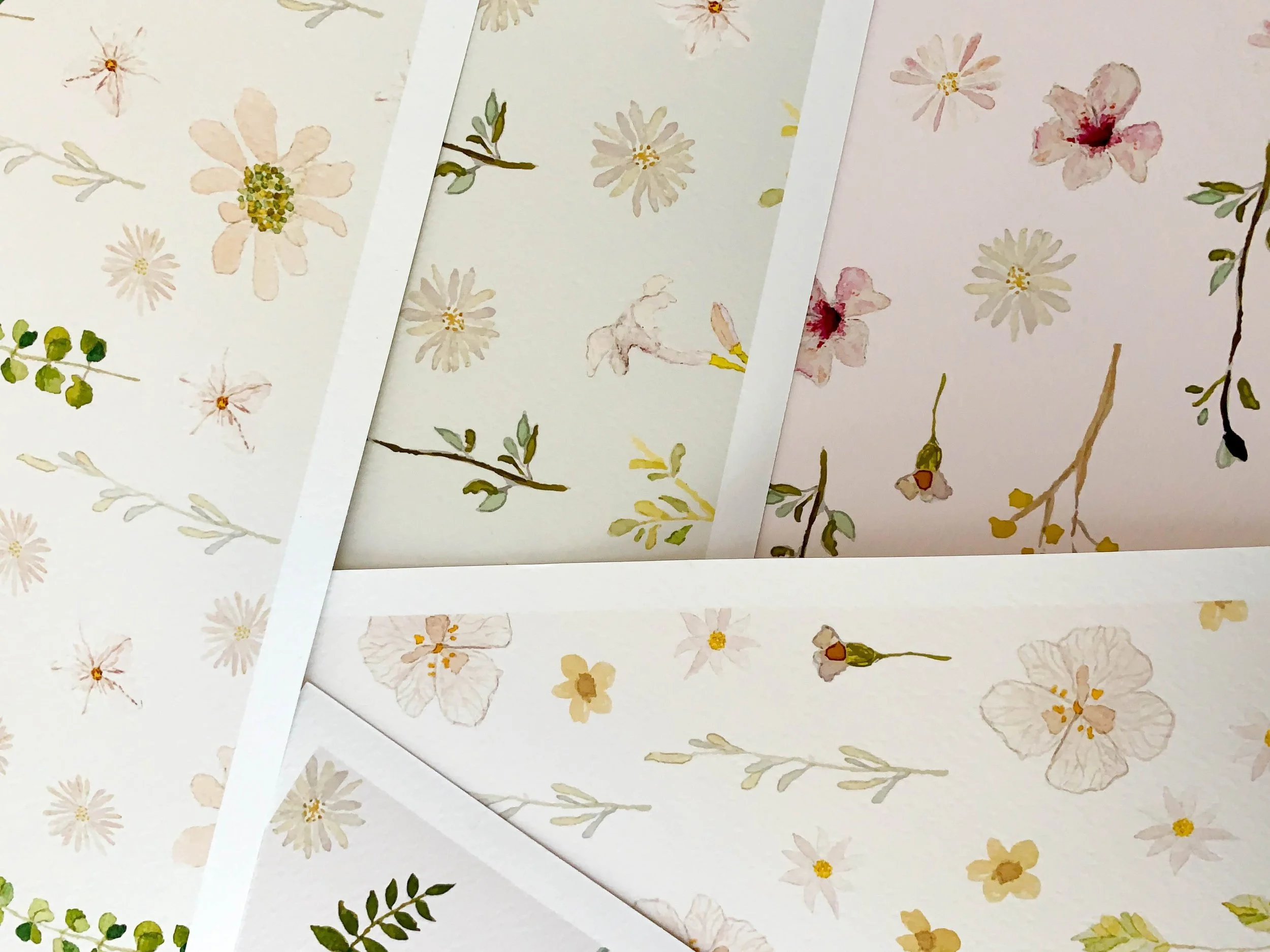 This is the essence I wanted to capture in my wildflower series. It’s where my journey into surface pattern design truly began, starting with tiny, hand-painted florals and leaves brought together to form something soft and cohesive.